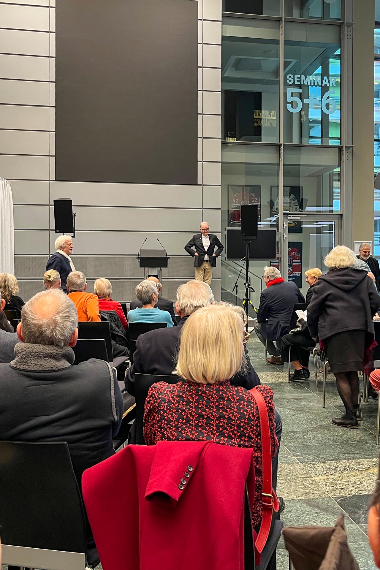 The opening took place on December 7, 2025, with a welcoming address by Mayor Thorsten Riehle. A lecture by Prof. Dr. Jochen Hörisch from Schriesheim on the topic „In Futuro“ complemented the festive opening.